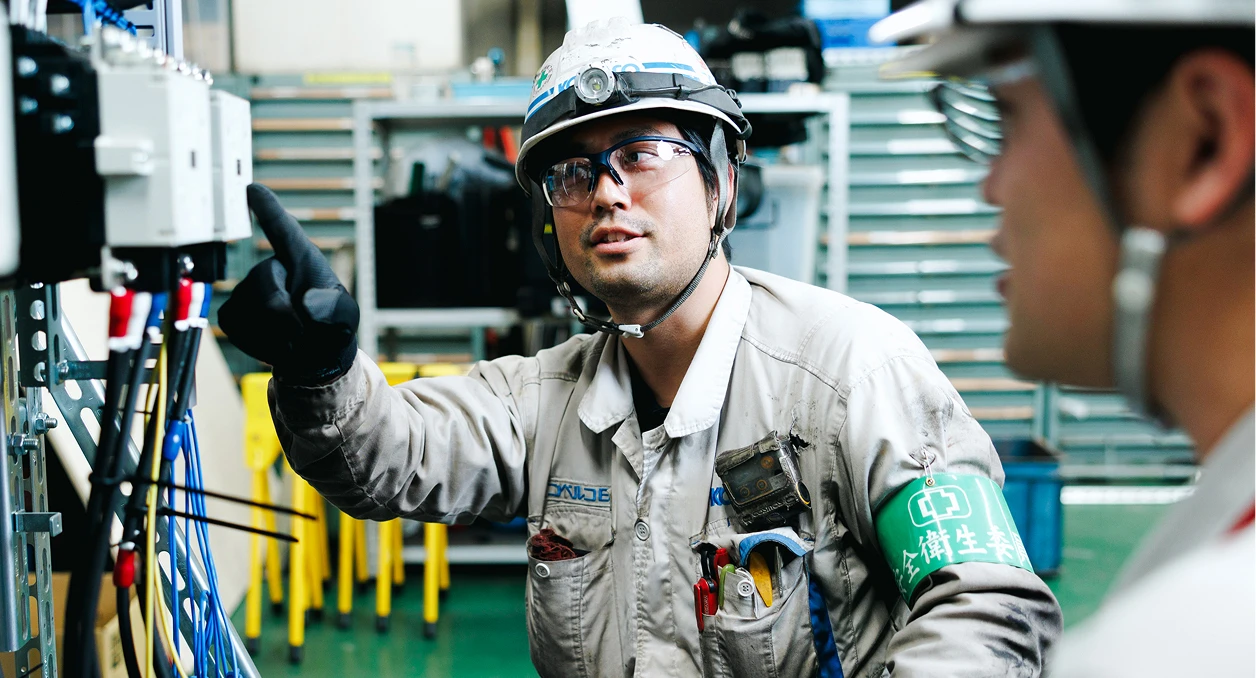 新人にも必ず伝えているのは、当たり前ですが「安全最優先」で作業することです。そのうえで、電気保全には“決まった答えがない” 場面が多くあります。電装品を交換するだけでは改善しないケースなど、原因を自分で探り、必要に応じて改善提案まで考えられる技術と感覚が重要です。若手には「なぜそうなるのか」を考える習慣をつけてもらうよう意識していて、理屈を理解した作業こそが成長に繋がると考えています。