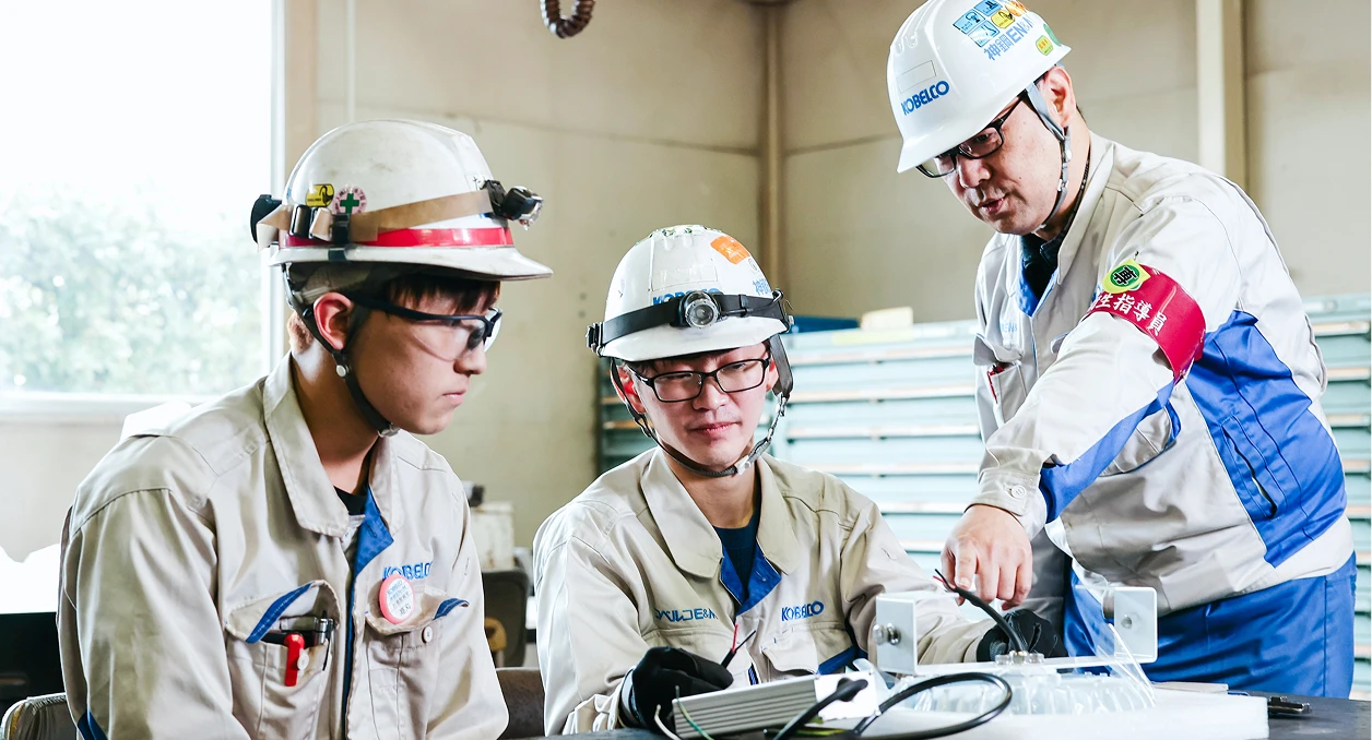 入社後の専門教育では、改めて電気の基礎から学ぶことができました。資格も取れるカリキュラムなので、電気科出身の私にとっても全部がプラスと言えるものでしたね。入社2年目から3年間は、神戸製鋼所へ出向して、KOBELCOグループのクレーンに対する知識や技術をたっぷりと吸収しました。クレーン保全班は全員が出向を経験しており、そこで培った技術を現場で活かしています。